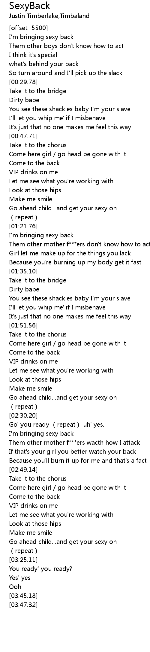 | [00:16.50] | I'm bringing sexy back |