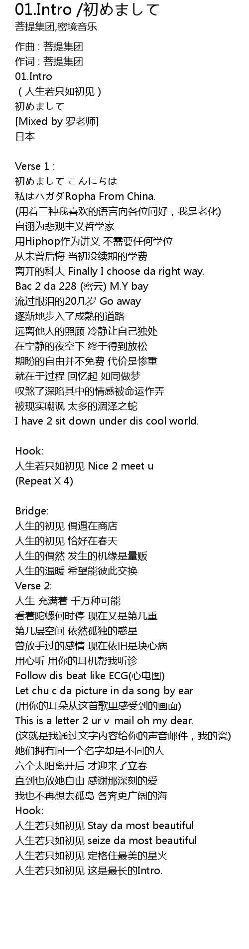 | rén shēng ruò zhī rú chū jiàn zhè shì zuì zhǎng de Intro. |
