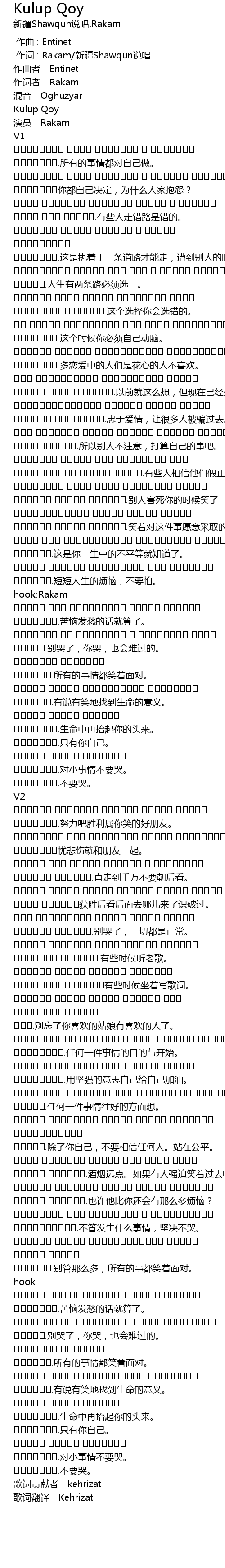 | [00:00.735] | 作词 : Rakam/新疆Shawqun说唱 |