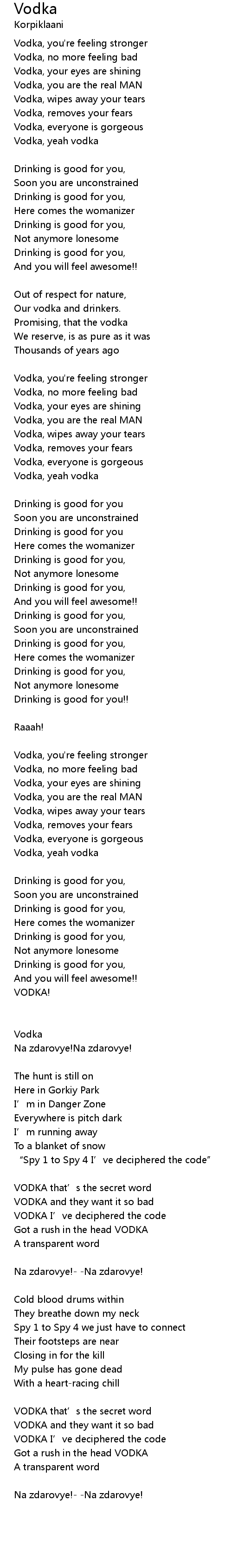 | Vodka, yeah vodka | |
