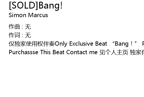 | 仅独家使用权伴奏Only Exclusive Beat “Bang!” Prod by Simon Marcus Purchassse This Beat Contact me 见个人主页 独家伴奏 XXXX |