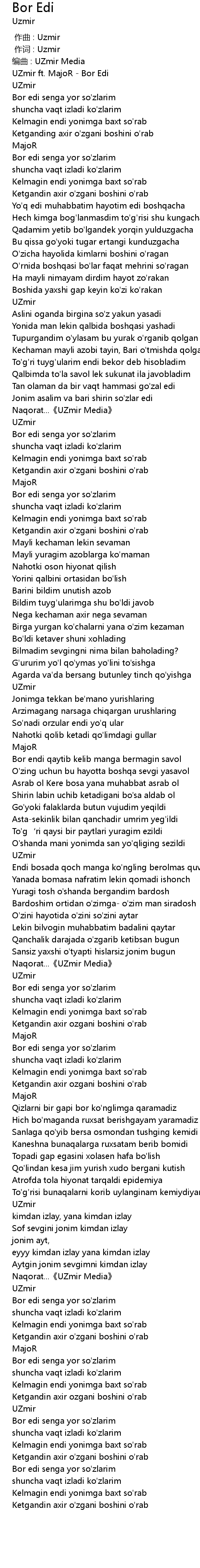 | [03:45.647] | Bor edi senga yor so'zlarim |
