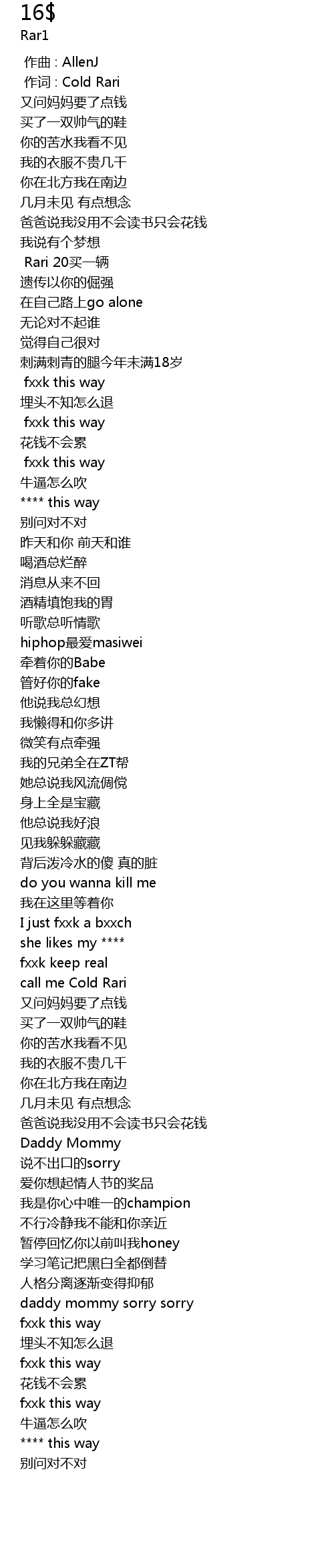 | [01:46.000] | you wen ma ma yao le dian qian |