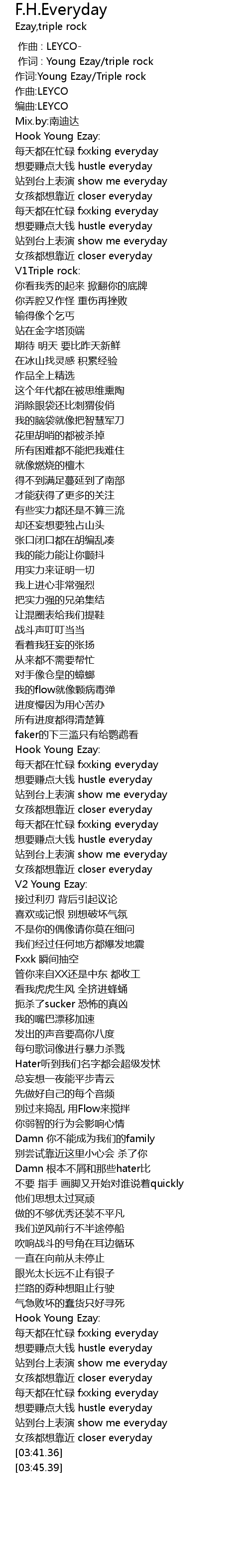 | [00:02.85] | 作词:Young Ezay/Triple rock |