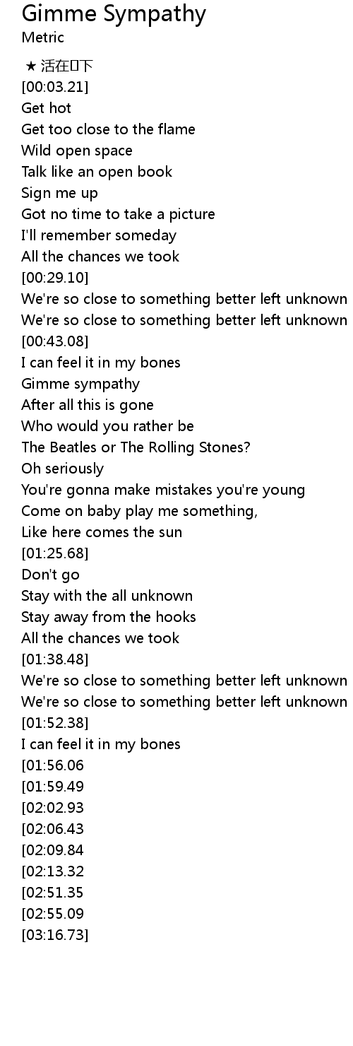 | [00:47.21] | Gimme sympathy |