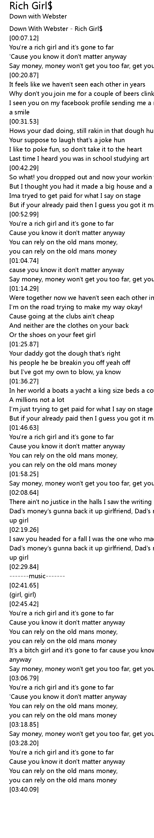 Down With Webster - Rich Girl$ |