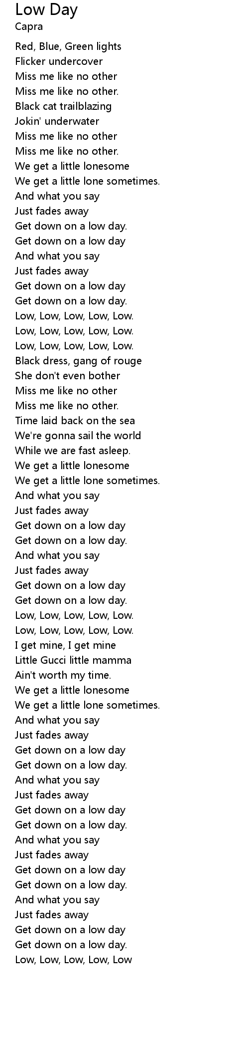 Low, Low, Low, Low, Low. |