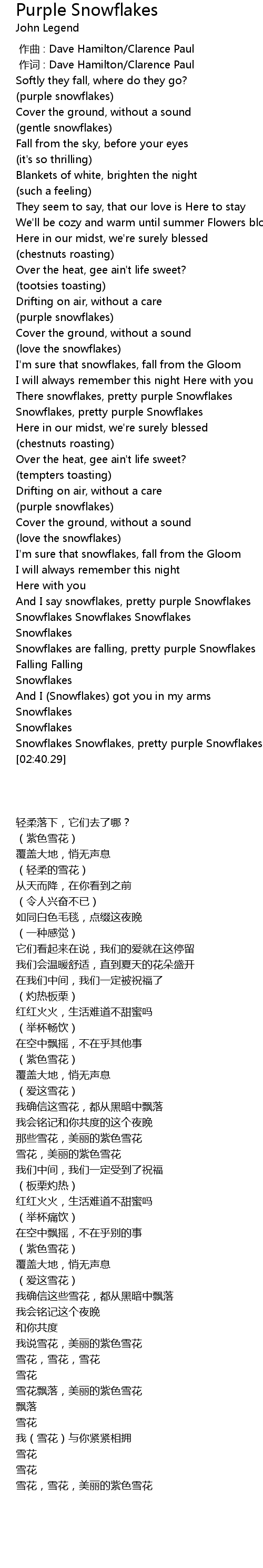 | [02:32.59] | Snowflakes Snowflakes, pretty purple Snowflakes |