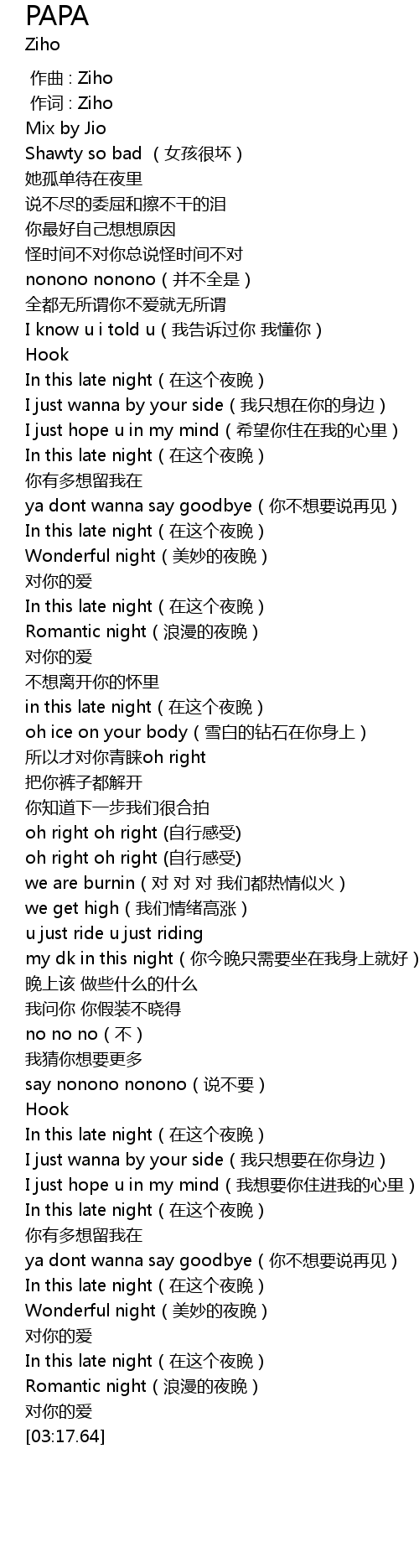 | [01:17.15] | In this late night zài zhè gè yè wǎn |