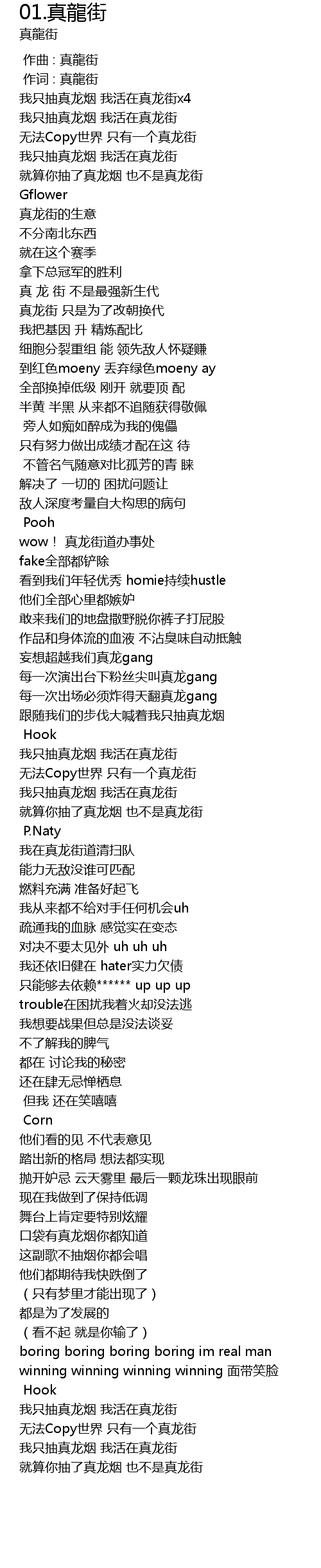 | [01:43.49] | 我只抽真龙烟 我活在真龙街 |