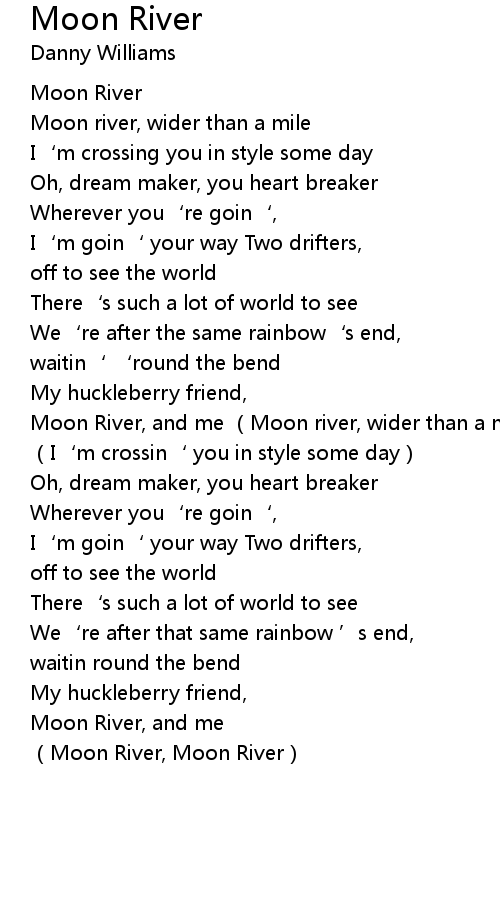 | [01:07.39] | Moon River, and me Moon river, wider than a mile |