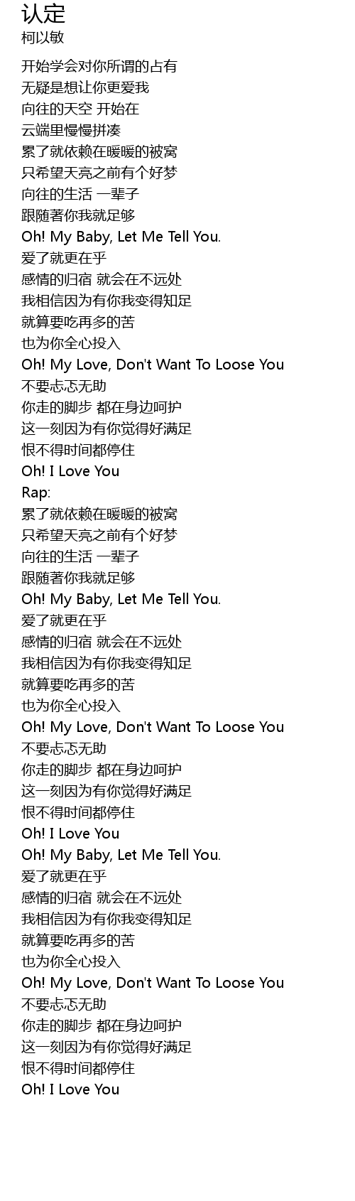 | [02:44.70] | Oh! My Baby, Let Me Tell You. |