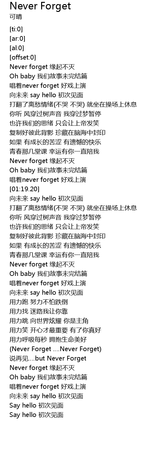 | [02:42.38] | (Never Forget ….Never Forget) |