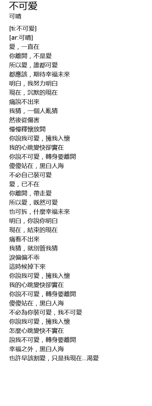 | [02:46.965] | 你說不可愛,轉身要離開 |