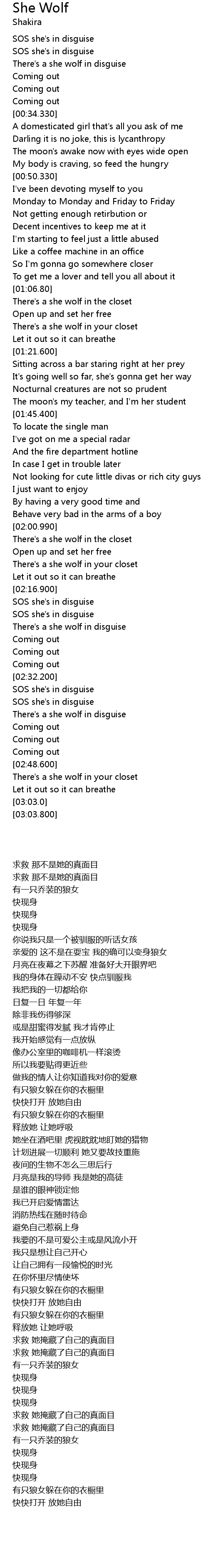 | [02:40.500] | There's a she wolf in disguise |