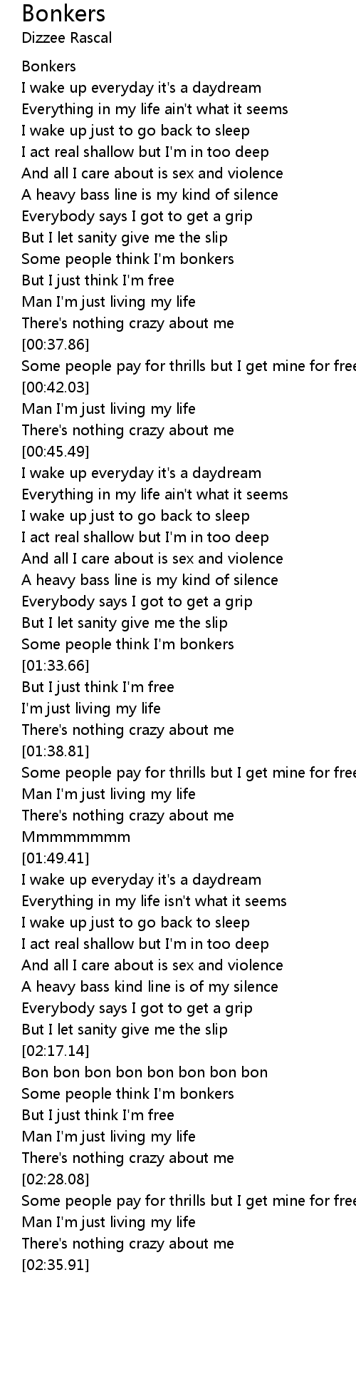 Bonkers Lyrics