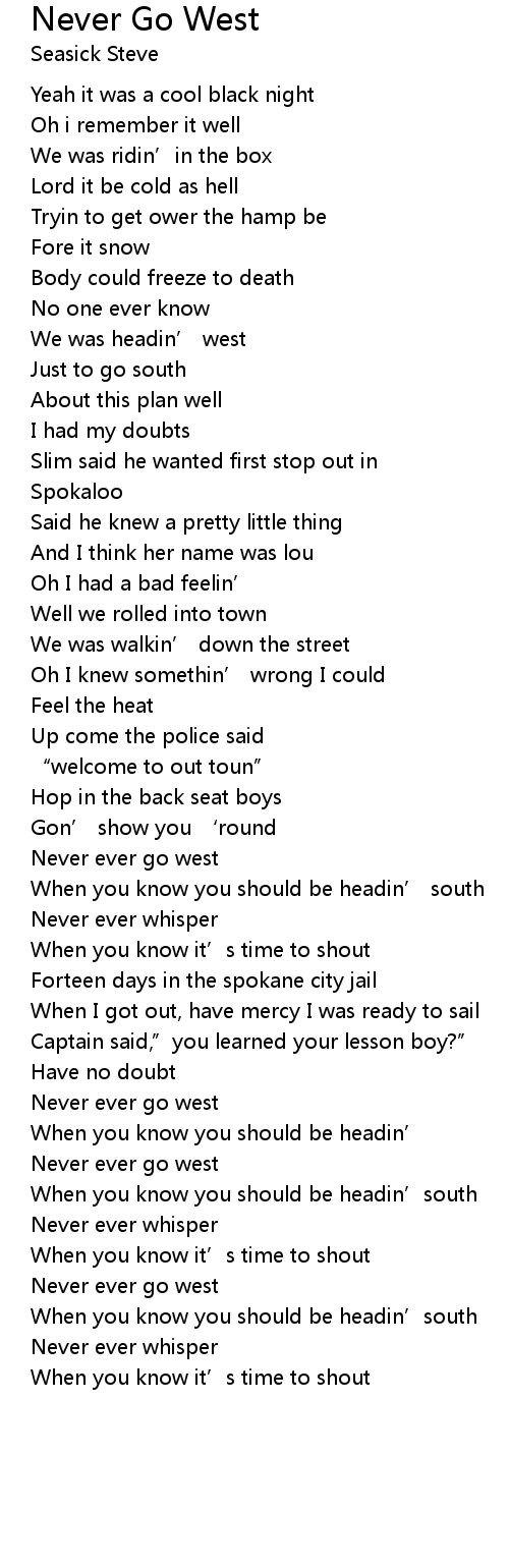 | Never ever go west | |