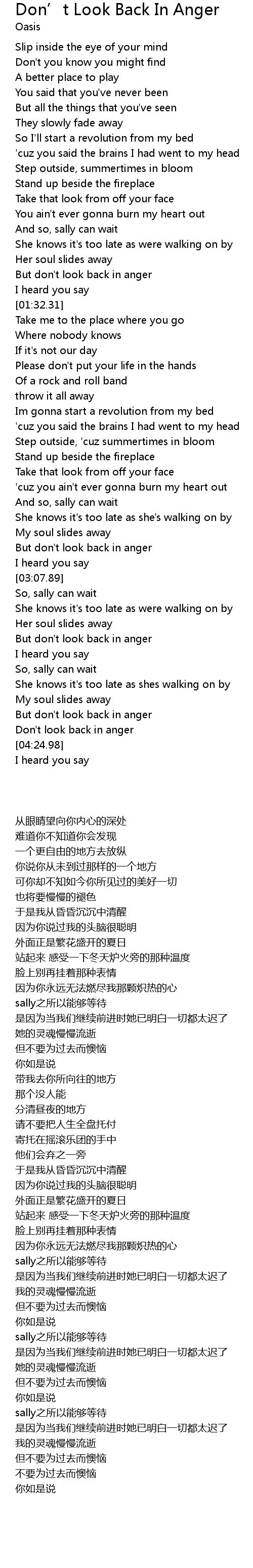 Don’t Look Back In Anger Don' t Look Back In Anger Lyrics