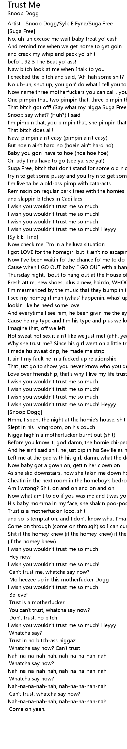 | [Snoop] Trust in no bitch-ass niggaz | |