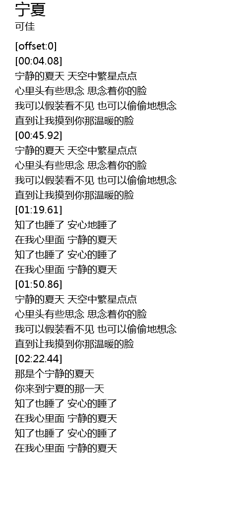 | [01:56.17] | 宁静的夏天 天空中繁星点点 |