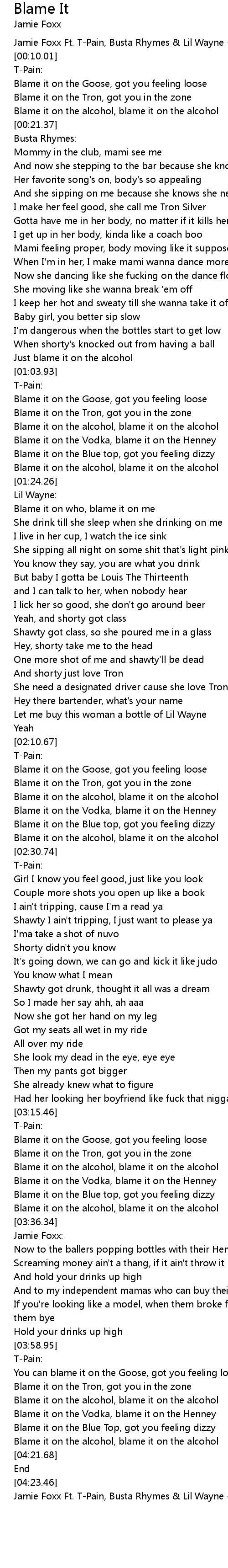 | [04:24.52] | Jamie Foxx Ft. T-Pain, Busta Rhymes & Lil Wayne - Blame It (Remix) |