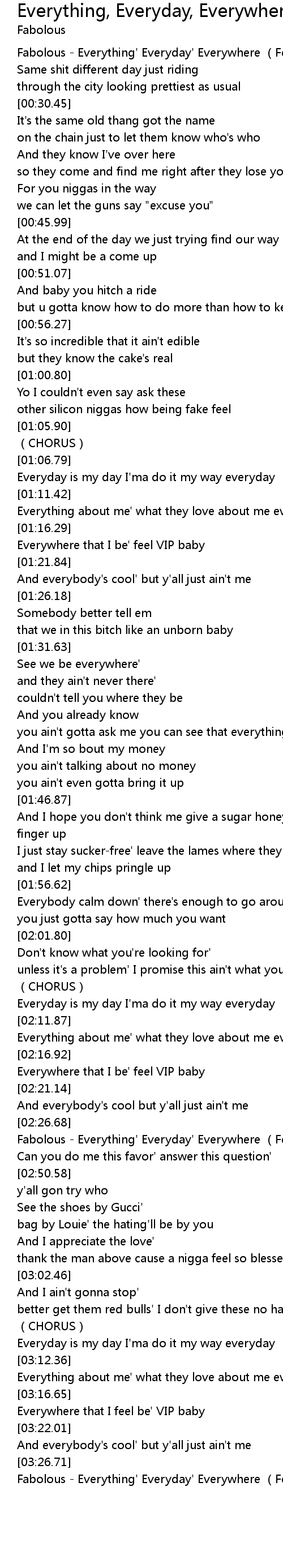| [03:43.56] | Fabolous - Everything' Everyday' Everywhere (Feat. Keri Hilson) |