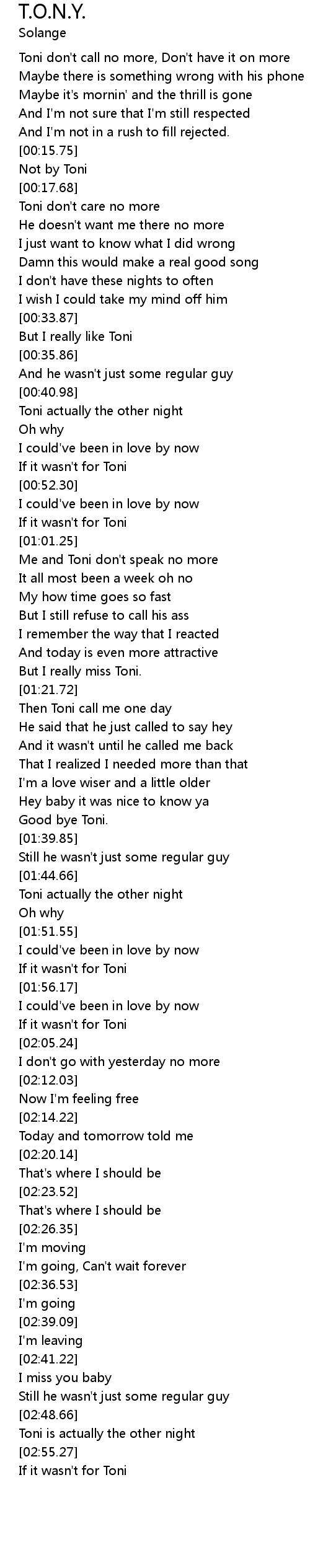 Toni don't call no more, Don't have it on more |