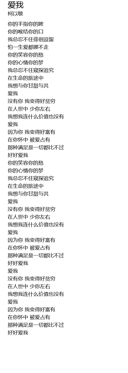 | [01:35.590] | hǎo hǎo ài wǒ |