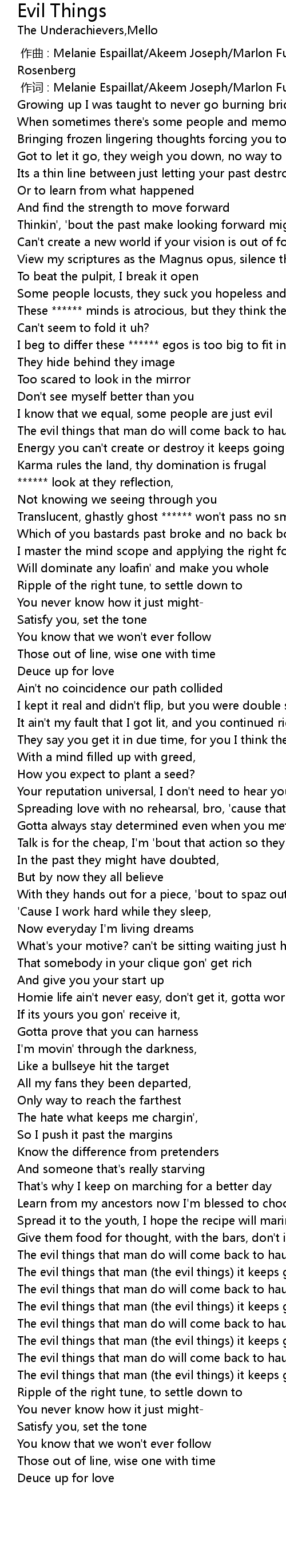 | [03:04.93] | The evil things that man the evil things it keeps going |