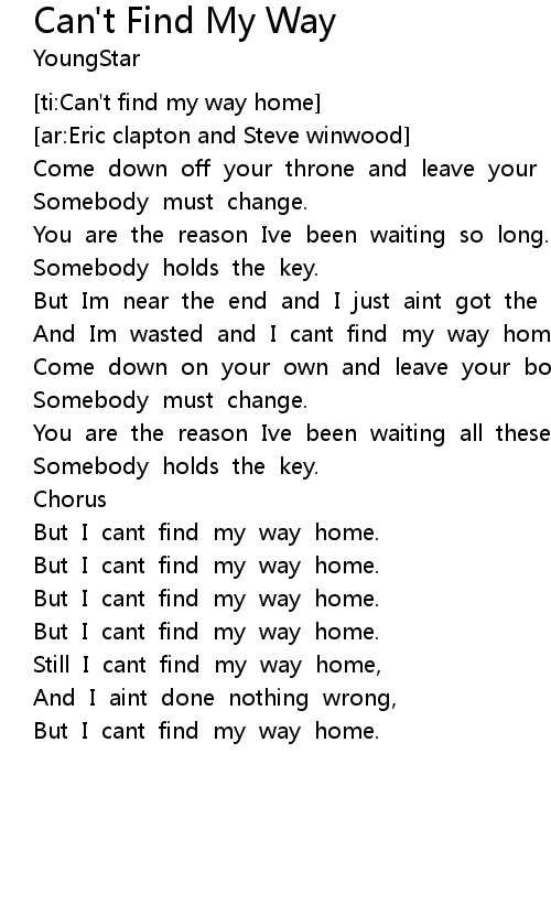 [ti:Can't find my way home] |