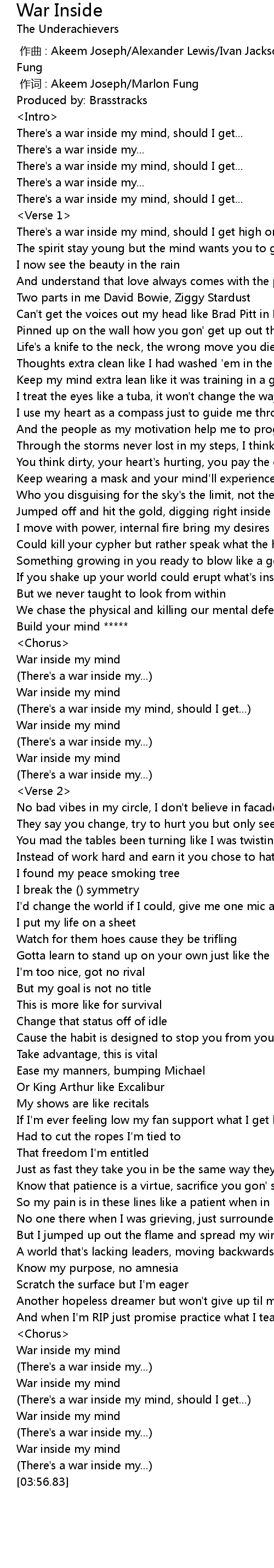 | [03:32.12] | War inside my mind |