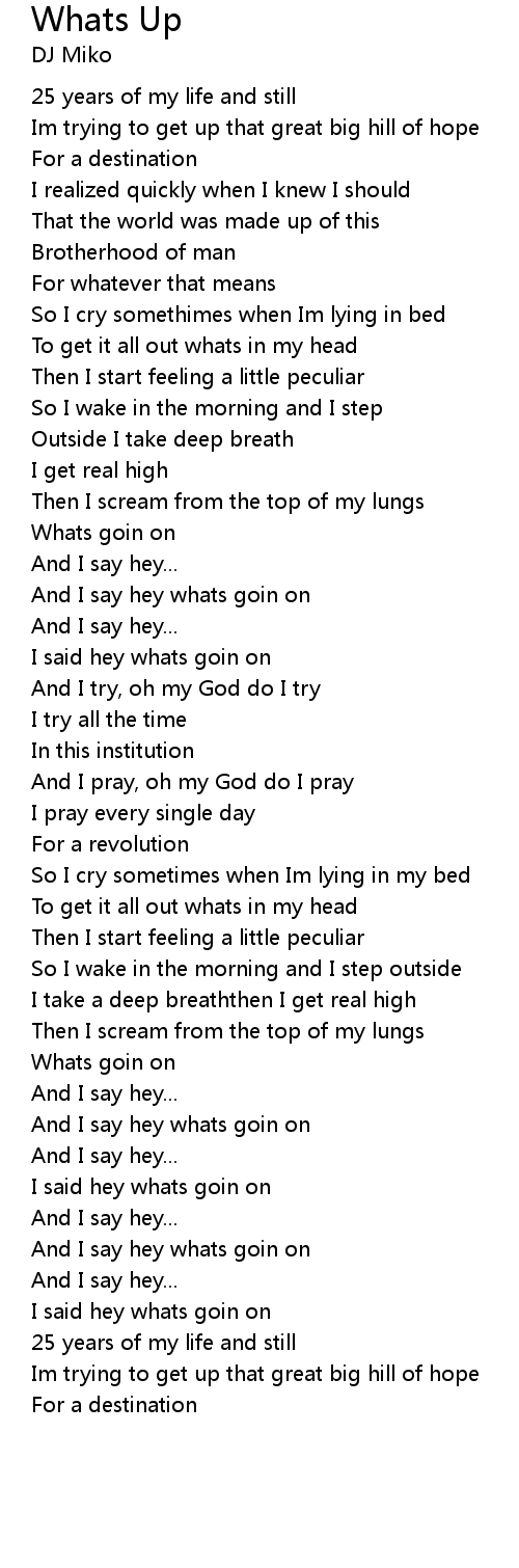And I say hey whats goin on |