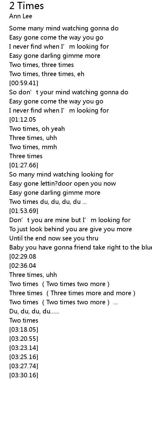 | [03:06.23][02:36.04] | Two times, ahhh |
