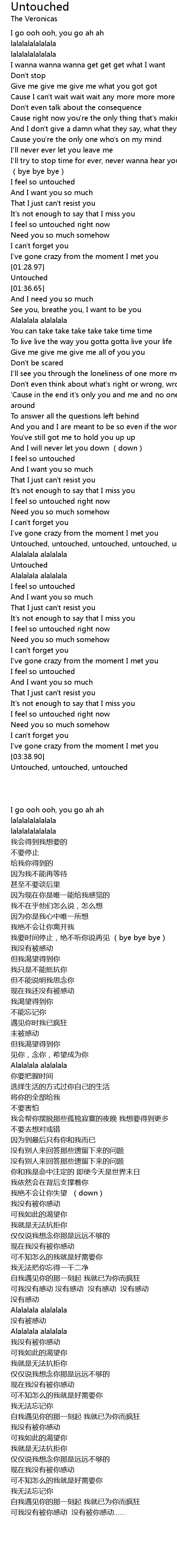 | [02:33.66] | Untouched, untouched, untouched, untouched, untouched |