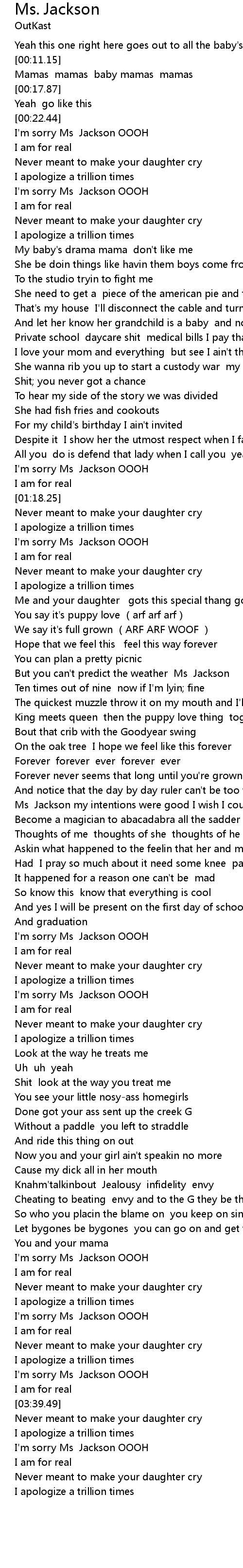 | [00:33.78] | I'm sorry Ms Jackson OOOH |