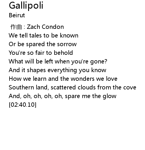 | [00:00.000] | zuo qu : Zach Condon |