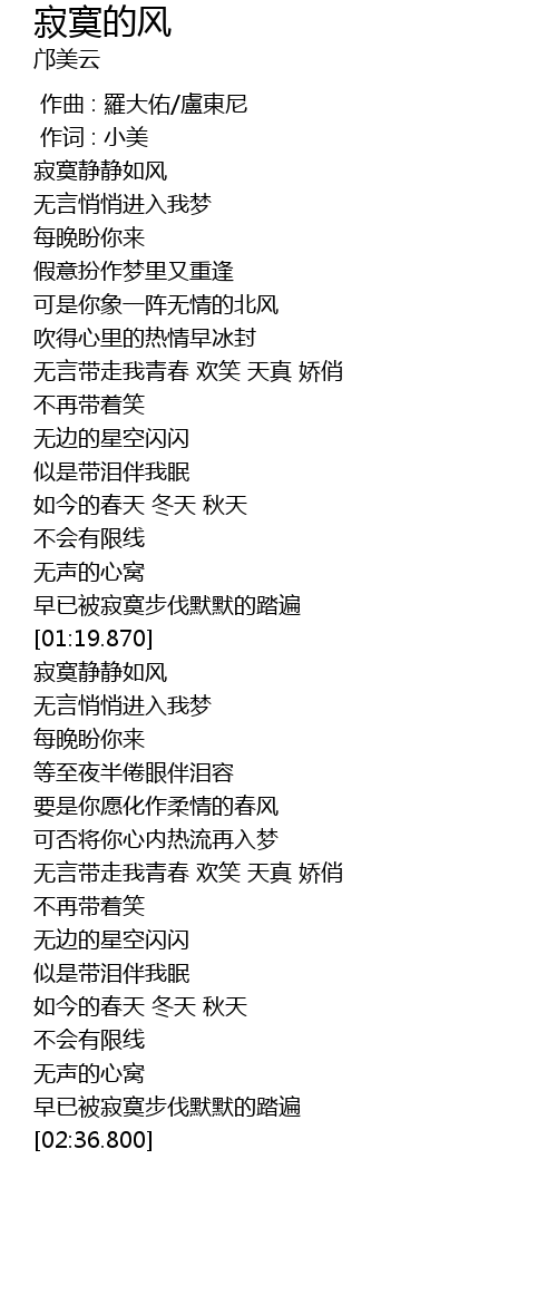 | [00:20.230] | 寂寞静静如风 |