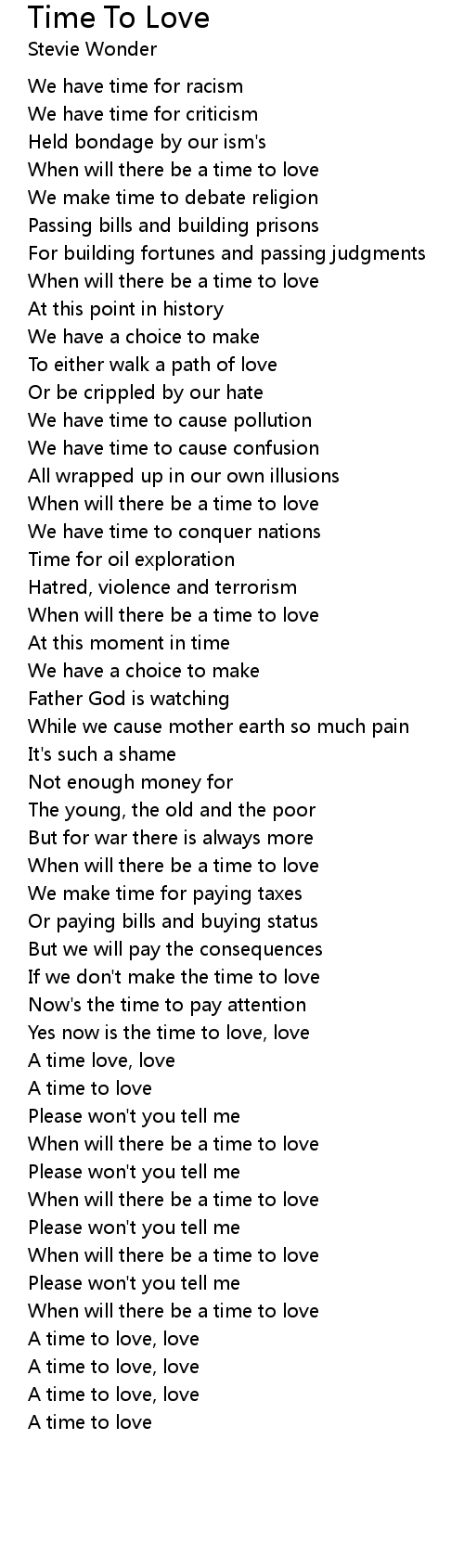 When will there be a time to love |