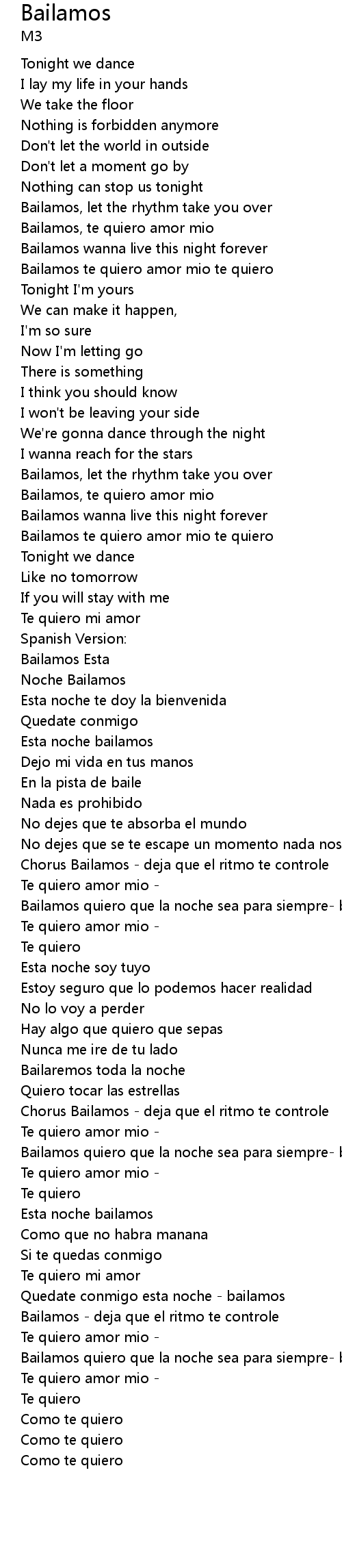 Bailamos te quiero amor mio te quiero |