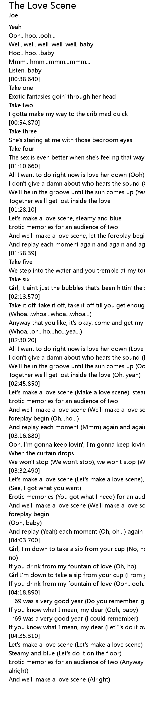 | [03:03.270] | And we'll make a love scene (We'll make a love scene), let the foreplay begin (Oh...ho...) |