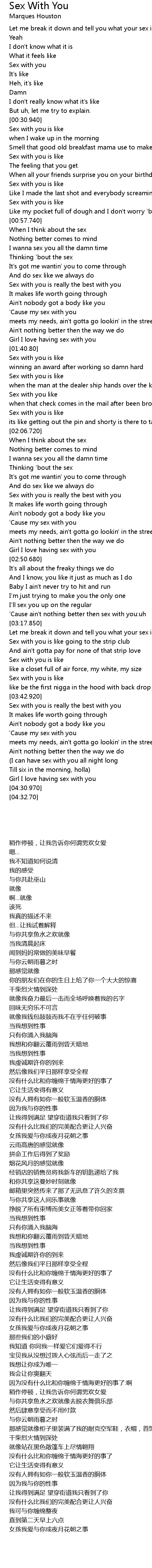 'Cause ain't nothing better then sex with you:uh |