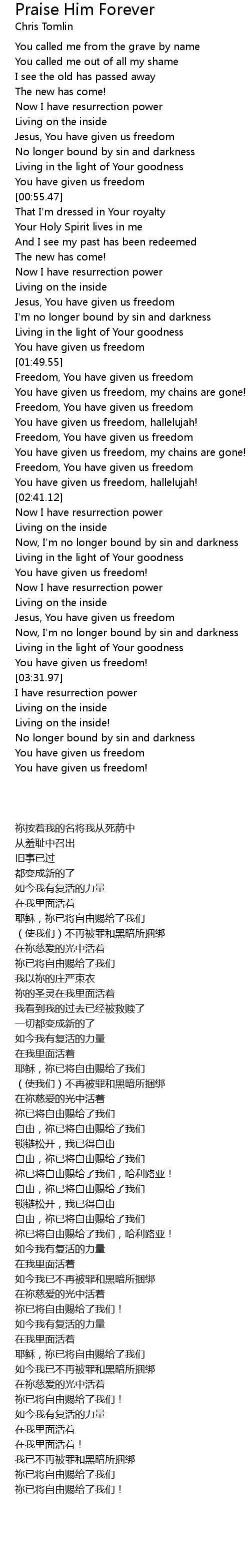 You have given us freedom, my chains are gone! |