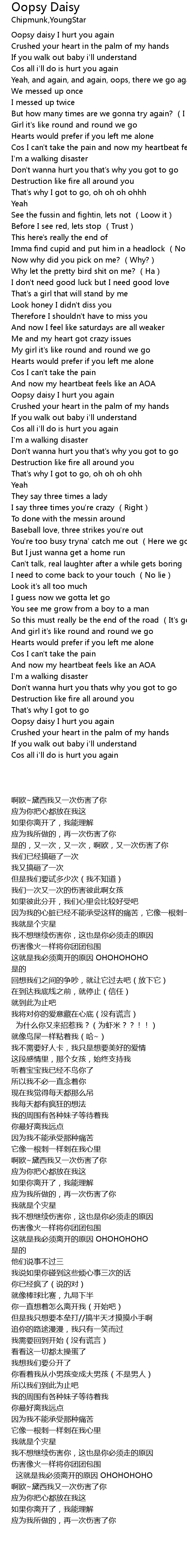| [01:32.12] | Oopsy daisy I hurt you again |