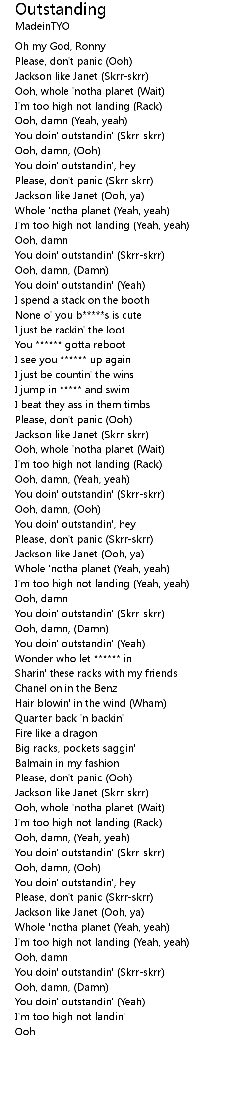 You doin' outstandin' (Yeah) |