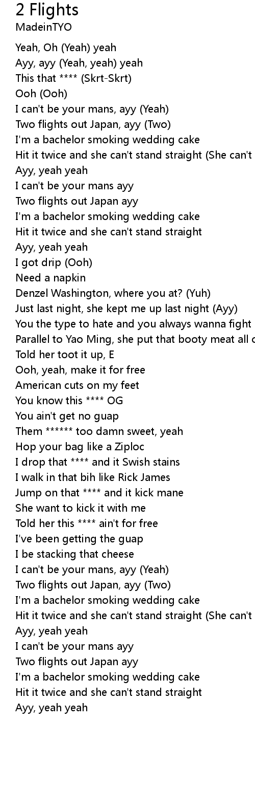 Two flights out Japan, ayy (Two) |