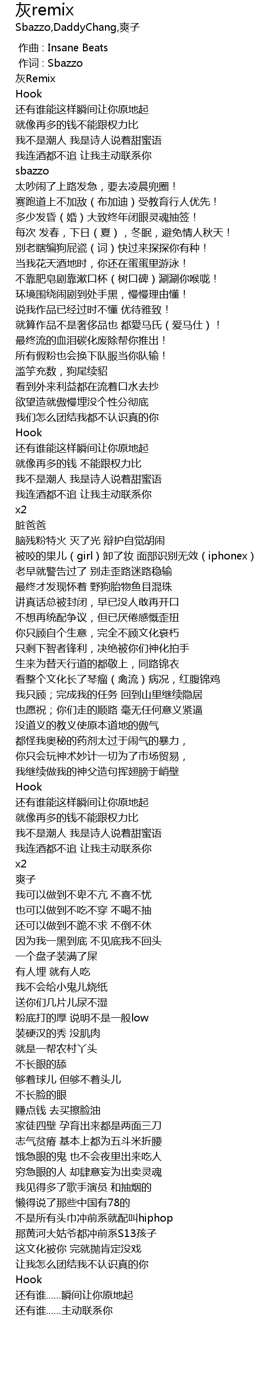 | [00:35.460] | 别老瞎编狗屁瓷(词)快过来探探你有种! |
