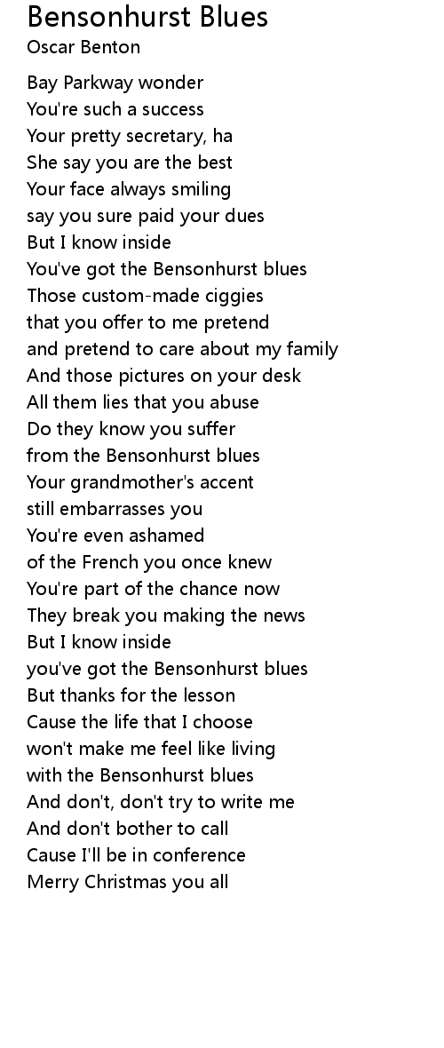 you've got the Bensonhurst blues |