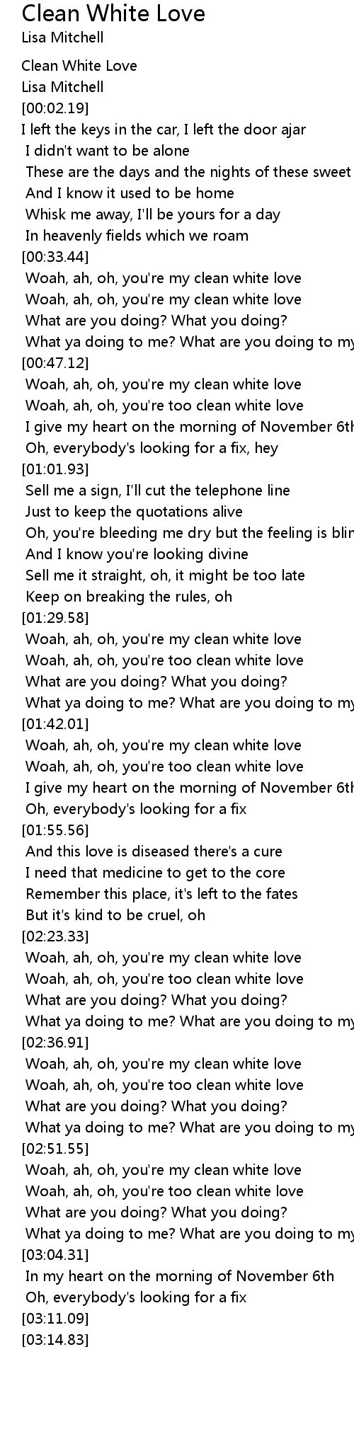 Woah, ah, oh, you're my clean white love |