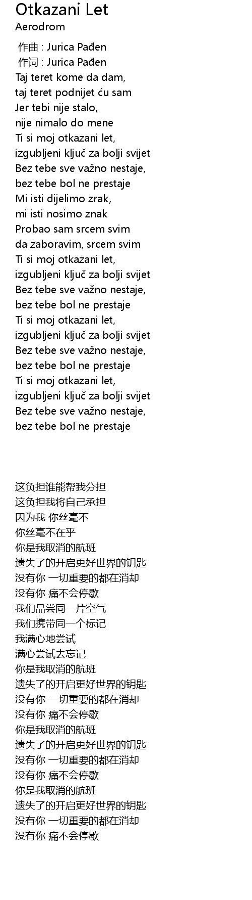 | [00:43.63] | Ti si moj otkazani let, |