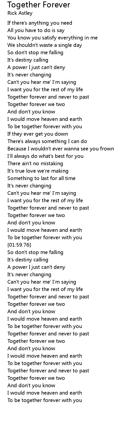 Together forever and never to past |